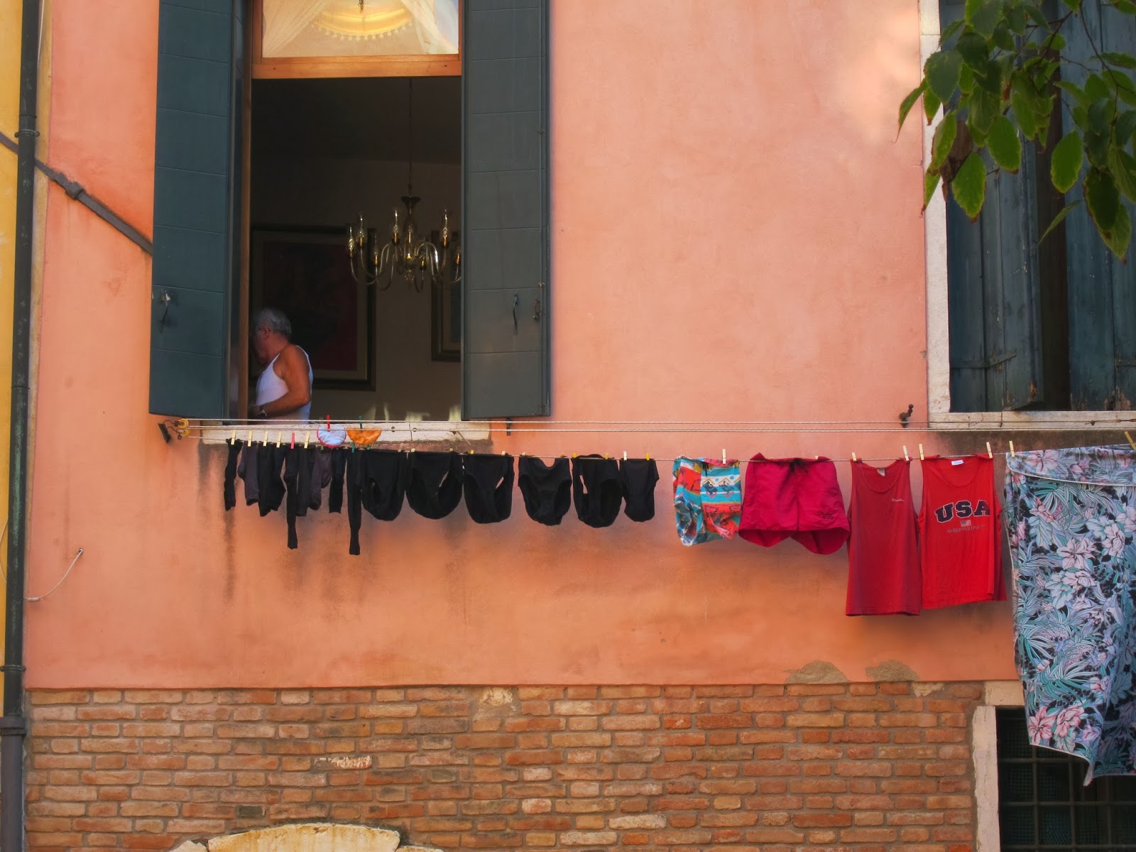 Since there are no yards in Venice - everyone hangs their laundry out the windows to dry!